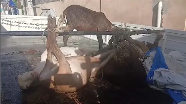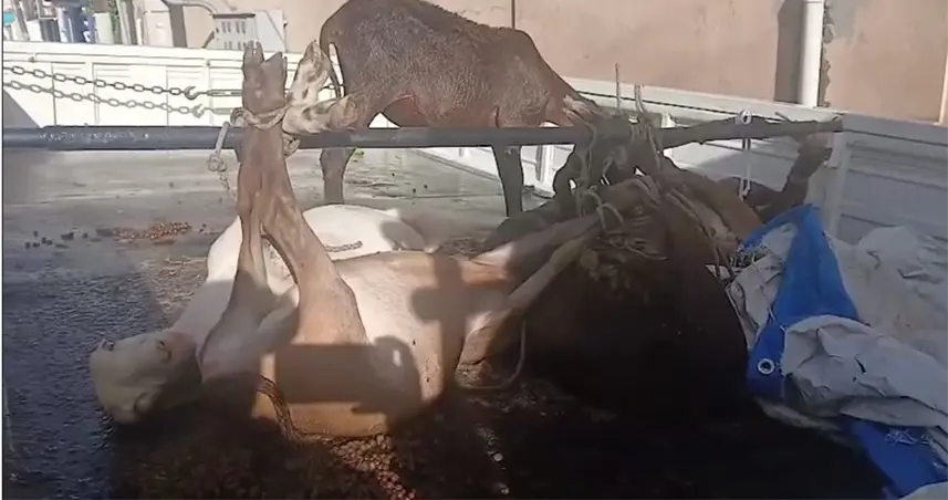 Según el reporte, los individuos fueron descubiertos por vecinos del lugar mientras cargaban los animales en un camión marca Daihatsu, color blanco, placa L452716.
