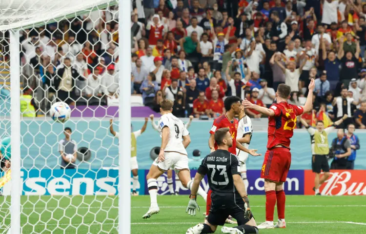 Morata había adelantado a España al rematar un centro desde la izquierda de Jordi Alba; mientras que Füllkrug, que había entrado al terreno de juego en sustitución de Thomas Müller trece minutos antes, colocó el definitivo empate a un gol tras aprovechar un servicio de Jamal Musiala.