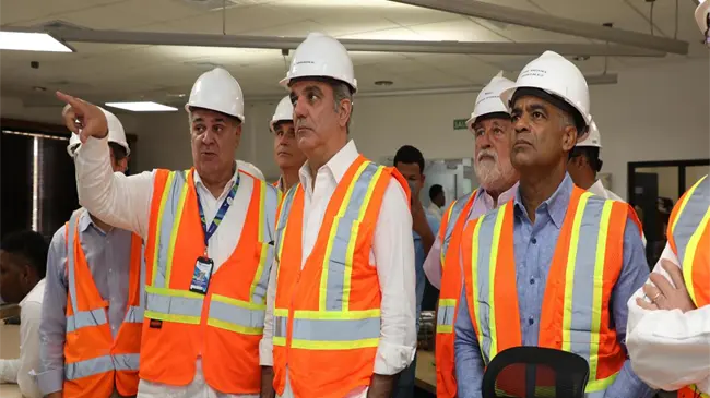 El presidente Abinader estuvo acompañado del ministro de Energía y Minas Joel Santos, así como los miembros del Consejo de Directores: Rolando González Bunster, José Miguel González Cuadra, Osvaldo Oller Villalón y Jean Marcos Troncoso, junto a Juan Rísquez, gerente de planta, y Osvaldo Oller Bolaños, director de Operaciones y Nuevos Negocios.