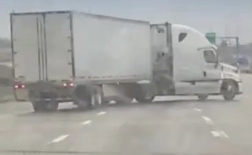 Las condiciones extremas de nieve provocaron un momento aterrador en una autopista muy transitada de Misuri, cuando un camión perdió el control y cruzó varios carriles de tráfico, terminando en una posición de "pico" (jackknife) o en forma de V.