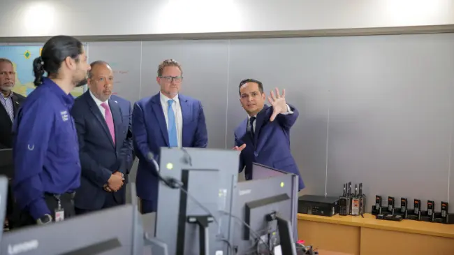 Santo Domingo.– Santo Domingo. - El Sistema Nacional de Atención a Emergencias y Seguridad 911 recibió en sus instalaciones del Distrito Nacional una delegación de alto perfil proveniente del Gobierno de los Estados Unidos (EE.UU.), encabezada por Chris Landberg, subsecretario adjunto de la Oficina de Anti-Narcóticos Internacionales y Aplicación de la Ley (INL).