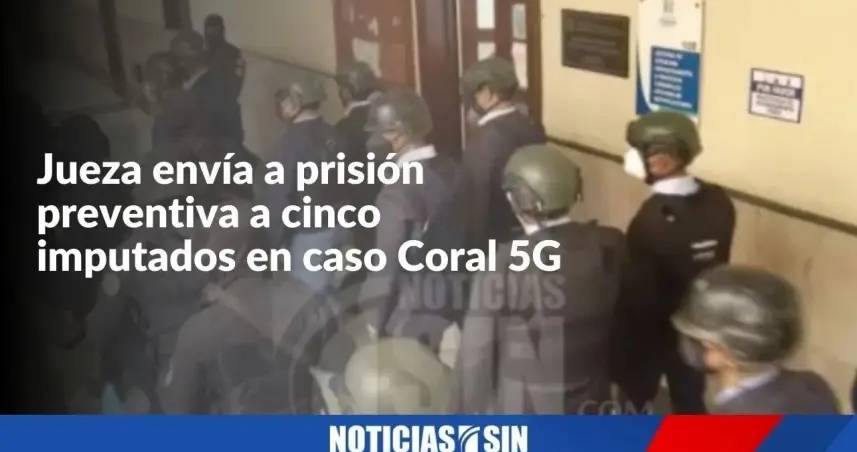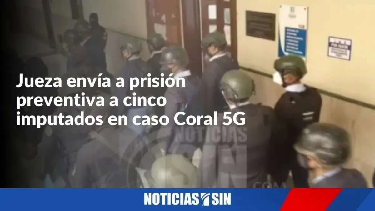 La jueza Kenya Romero dispuso la tarde de este martes el envío a prisión preventiva a cinco de los doce implicados en la Operación Coral 5G.El titular de la Pepca, Wilson Camacho, explicó que del grupo cinco quedaron en arresto domiciliario mientras los dos restantes les fueron otorgada la libertad con impedimento de salida y presentación periódica, aunque no especificó con nombres cada una de las medidas emitida por el tribunal.A su salida de la audiencia Camacho dijo que la medida establecida es un " reconocimiento a la contundencia que presenta el Ministerio Público ante los tribunales".