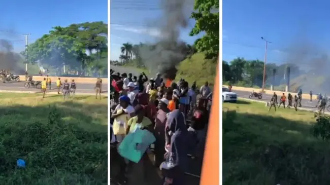 Santo Domingo.– Santo Domingo.- Miembros de la Policía y el Ejercito Nacional dispersaron con disparos a decenas de personas que protestan en la Circulación de Santo Domingo en el tramo El Naranjo, exigiendo el arreglo de las calles y el puente peatonal.