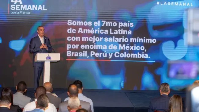 En cuanto a los aumentos salariales, el presidente Abinader manifestó que en esta gestión se aplicaron dos aumentos de salarios mínimos, un 19% de aumento en 2022.