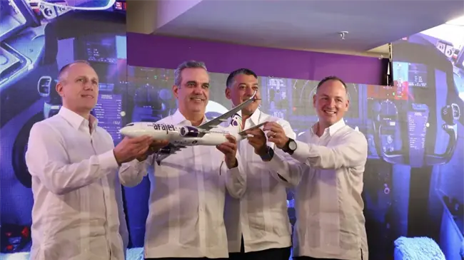 ARAJET iniciará sus operaciones en mayo desde el Aeropuerto Internacional Las Américas, con vuelos hacia Costa Rica, Colombia, Jamaica y otras islas del Caribe, con el avión bautizado como Pico Duarte.