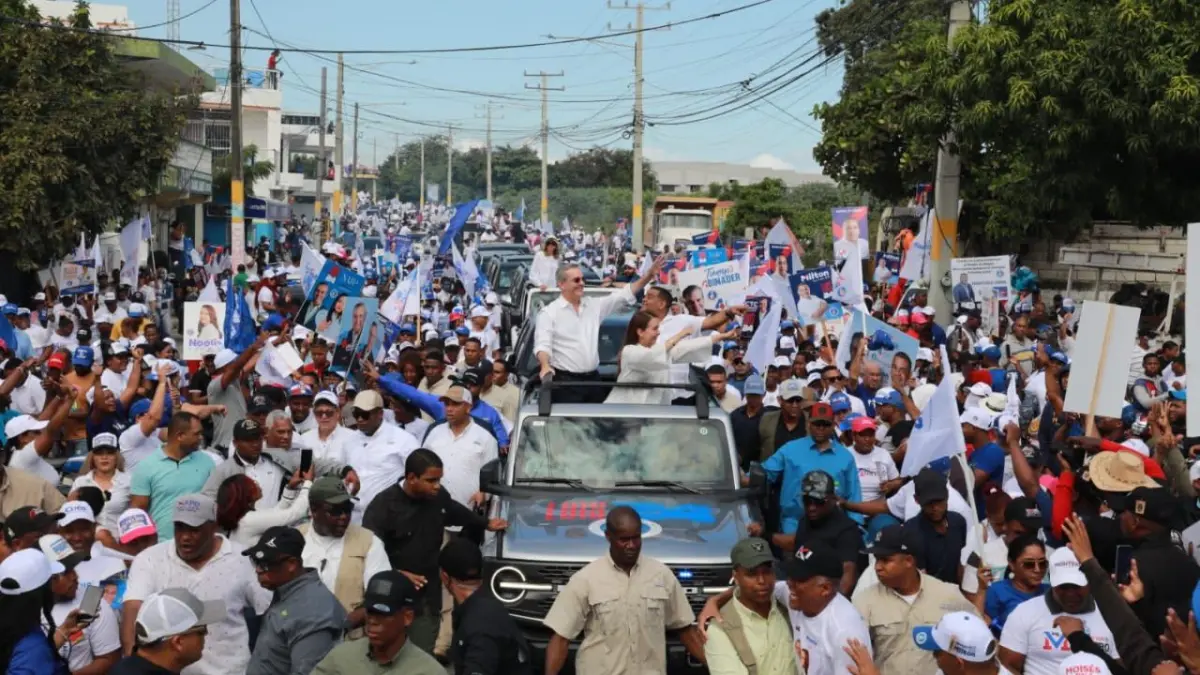 Al paso del líder del PRM por las calles Padre Camilo B., José Francisco Peña Gómez, Tony Mota Ricart, Roberto Soler, Arzobispo Nouel, Gregorio Luperón, Juan Pablo Duarte y José María Cabral la gente salía de sus casas pidiendo cuarto años más para el presidente Abinader.