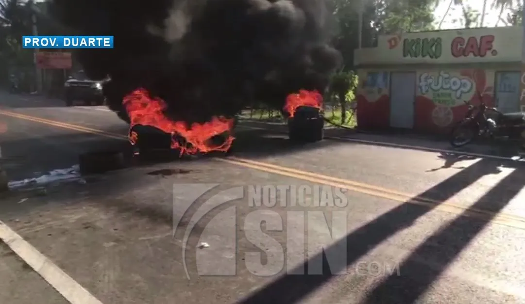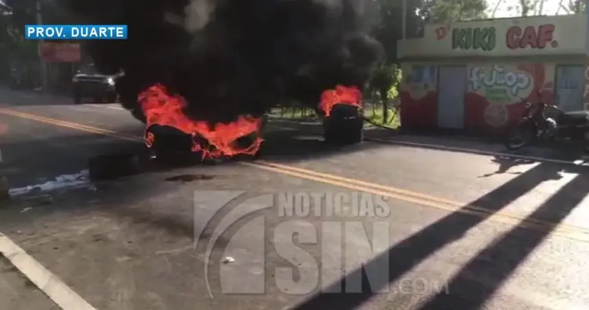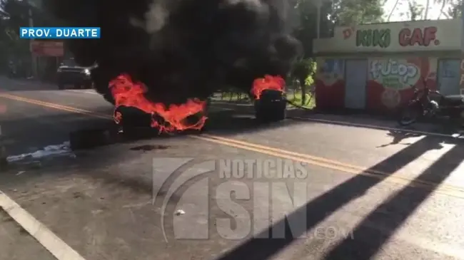 Entretanto con la quema de neumáticos, pancartas y consignas los residentes en Sabana Rey de Cenovi se lanzaron a las calles aprovechando la visita del primer mandatario para exigir la construcción de la carretera Eladio Romero Santos.
