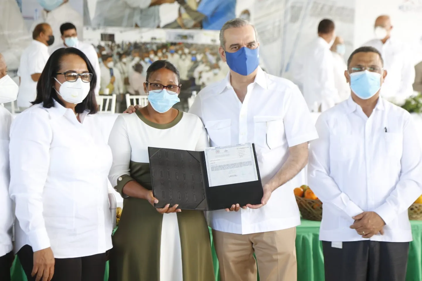 El mandatario junto a la Dirección Ejecutiva de la Comisión Permanente de Titulación de Terrenos del Estado y el Instituto Agrario Dominicano, hizo entrega de los primeros certificados de este año con los cuales se impacta positivamente a 1,093 familias, que a su vez se traducen en más de 4,300 personas.