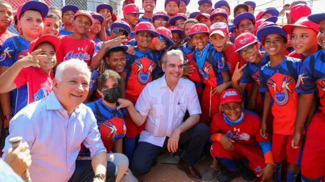 SANTO DOMINGO ESTE.- Con una inversión superior a los 12 millones de pesos, el presidente Luis Abinader entregó este sábado el estadio de béisbol “La Goma”, en el ensanche Isabelita, que beneficiará más de 3,000 niños y jóvenes del municipio.