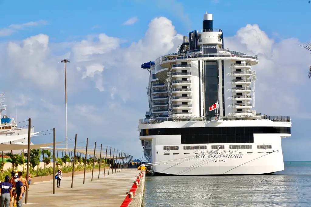 El gobernante presidió la ceremonia del histórico arribo del primer crucero MSC Seahore al nuevo puerto, con 1,700 turistas procedentes de Miami, Estados Unidos.