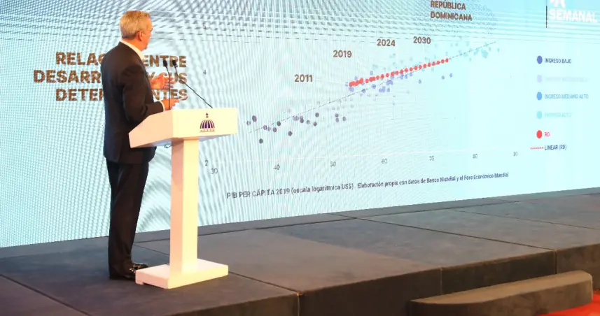 Asimismo, el jefe de estado informó que el gobierno se propone convertir a República Dominicana en un país plenamente desarrollado en una década, "con la meta de duplicar su PIB a 2036".