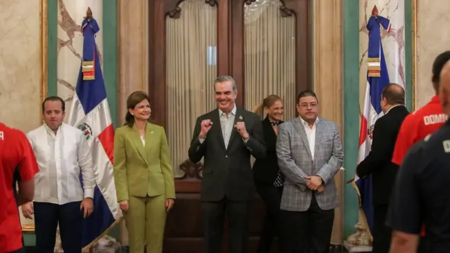 Luego, la capitana de la selección femenina, Niverka Marte, entregó al presidente una réplica de la medalla de oro alcanzada en la pasada Copa Panamericana en México.
