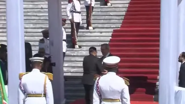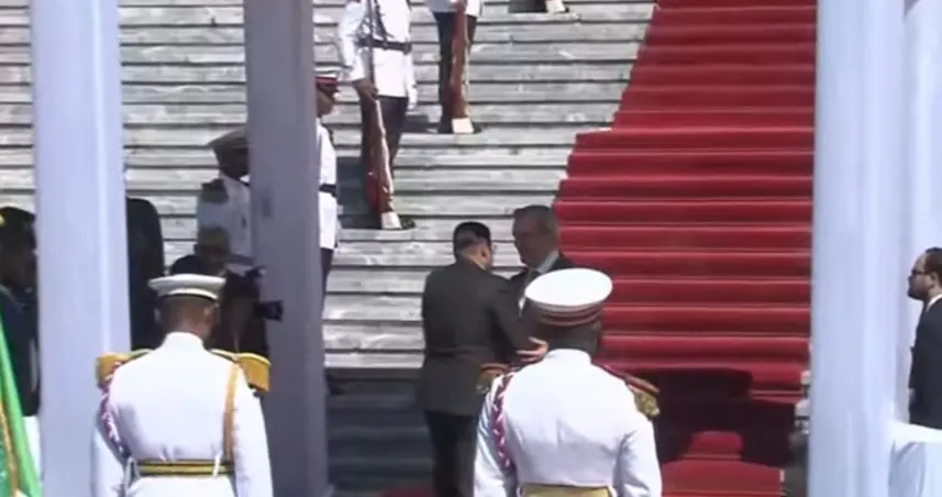 Santo Domingo.- El presidente Luis Abinader recibio en el Palacio Nacional a su homólogo de Surinam, Chandrikapersad Santokhi, donde firmaron varios acuerdos entre ambas naciones, como de igual forma evalúan otros proyectos.