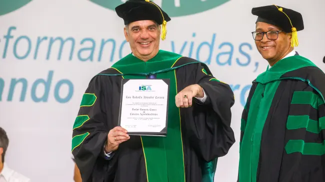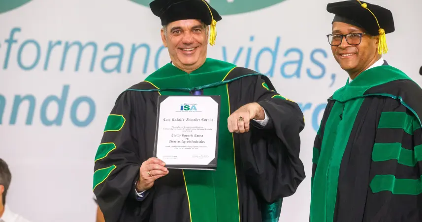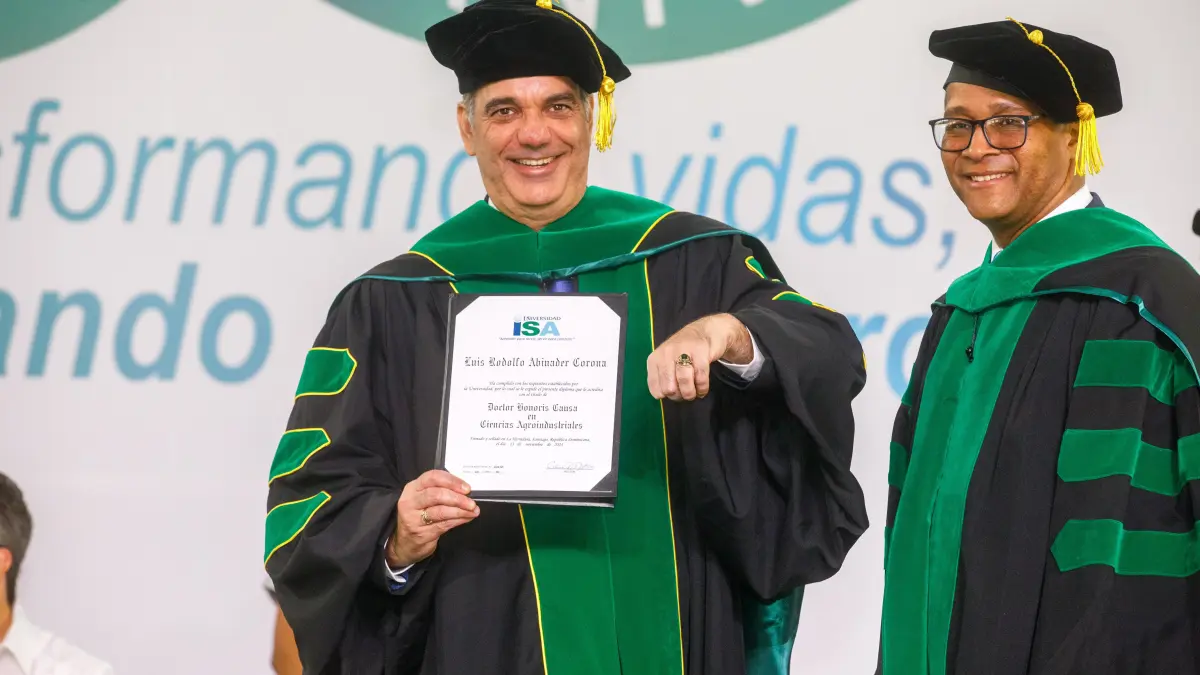 En lo que respecta al otorgamiento del título Doctor Honoris Causa en Ciencias Agroindustriales al presidente de la República, Luis Abinader Corona, durante el acto, Ricardo Fondeur, presidente del Consejo de Directores de la Universidad ISA, resaltó que la institución otorgaba este título al mandatario en reconocimiento de su liderazgo visionario y las iniciativas impulsadas para fortalecer los programas educativos y el sector agroindustrial y productivo del país. "El presidente Abinader personifica una trayectoria caracterizada por una vocación inquebrantable de servicio público, una visión".