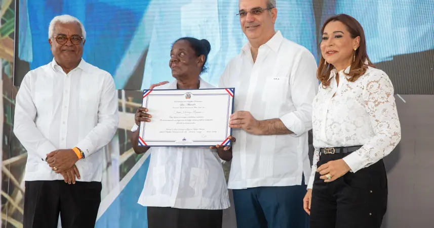 Durante el acto, el jefe de Estado reconoció a los colonos José Santana, Geraldo Sosa Rosario y Dominga Moreno con la Medalla al Mérito Civil.
