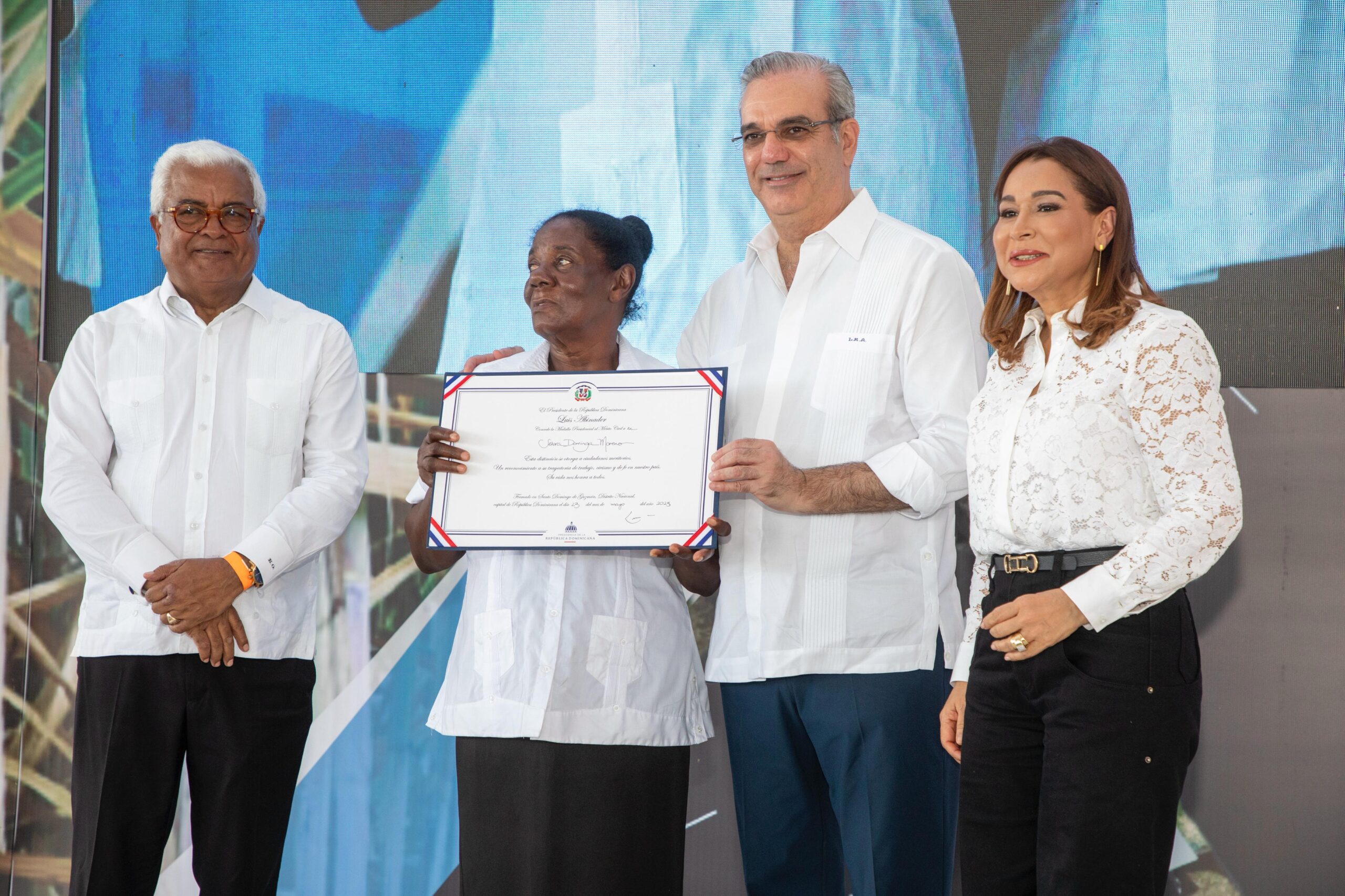 Durante el acto, el jefe de Estado reconoció a los colonos José Santana, Geraldo Sosa Rosario y Dominga Moreno con la Medalla al Mérito Civil.