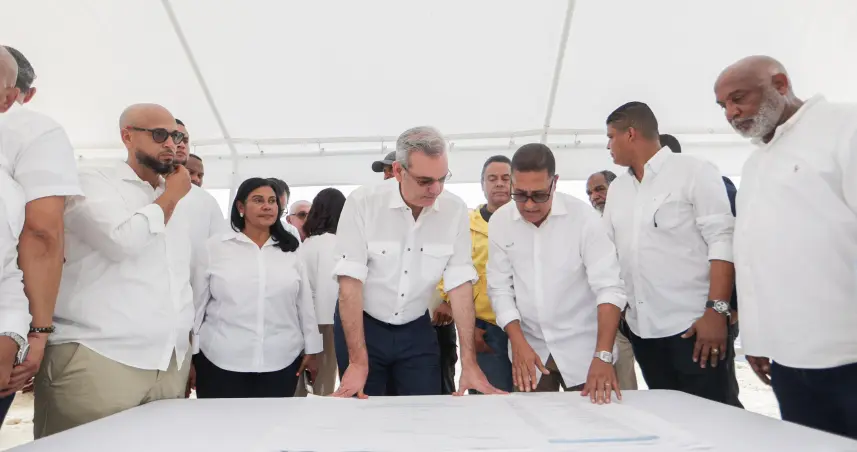 El jefe de Estado realizó un recorrido por el muro de contención junto al ministro de Obras Públicas, Deligne Ascensión, y los ingenieros de la obra.