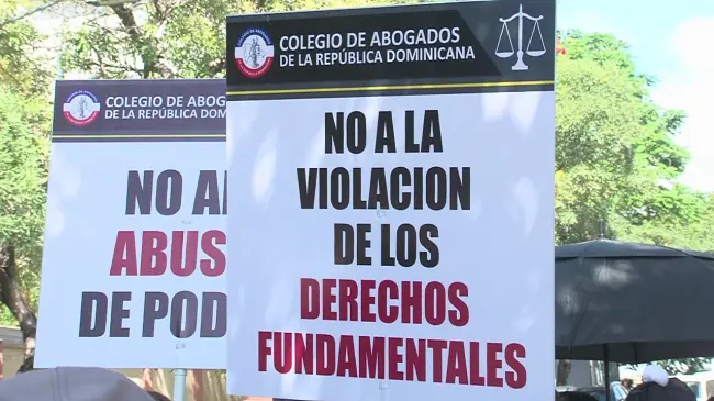 Santo Domingo.– Santo Domingo. - Un grupo de juristas pertenecientes al Colegio de Abogados de la República Dominicana (CARD) junto a varias organizaciones de la sociedad civil marchó hasta el Palacio Nacional, en protesta contra la Ley 01-24, que crea la Dirección Nacional de Inteligencia (DNI).
