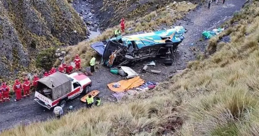 La información preliminar que se maneja es que el hecho se produjo debido a las malas condiciones de la vía, por la "poca visibilidad, una densa neblina y un terreno resbaloso", por la época de lluvias que comienza en el país andino, por lo que el autobús cayó aproximadamente unos 150 metros.