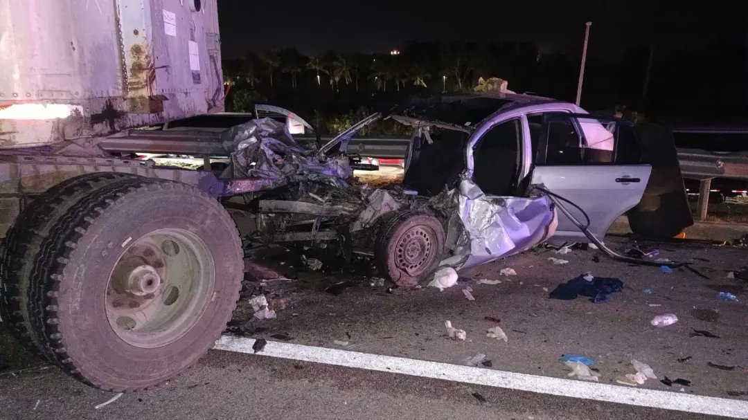 Según versiones, el accidente se produjo entre un tráiler, un carro y una camioneta, tras presuntamente despegarse un contenedor del camión.
