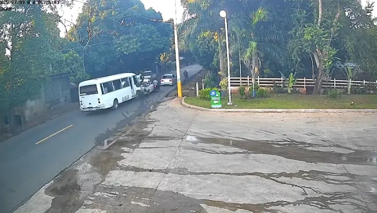 Una cámara de seguridad capturó un choque entre un minibús y una camioneta en la carretera de Guanuma, Santo Domingo Norte, afectando también a un motorista.