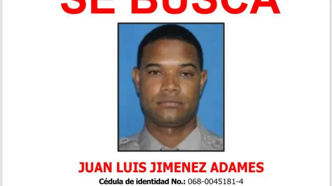 Santo Domingo.– Santo Domingo.-La Policía Nacional, a través de la Subdirección de Investigación (DICRIM), en La Vega, junto al Ministerio Público, emitió la orden de búsqueda y captura del segundo teniente Juan Luis Jiménez Adames, de 41 años, quien es señalado como presunto autor del doble homicidio por arma de fuego de dos mujeres, su pareja sentimental y la madre de ésta, en un hecho ocurrido este sábado en el sector Los Robles, La Vega.