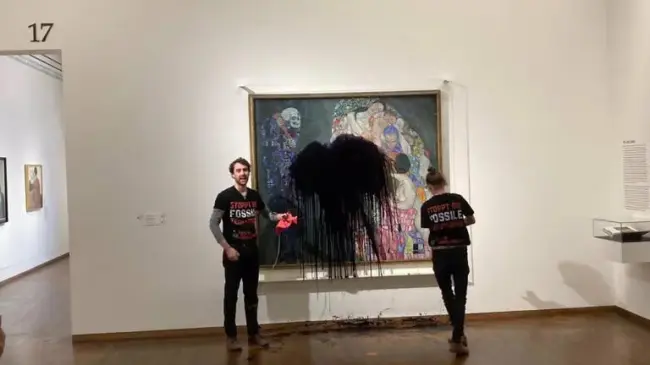 Activistas arrojan petróleo sobre un cuadro de Klimt en un museo de Viena