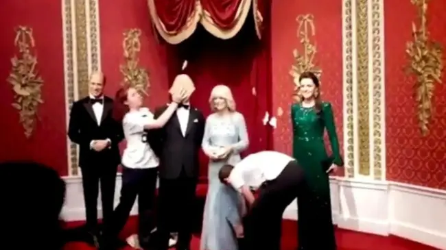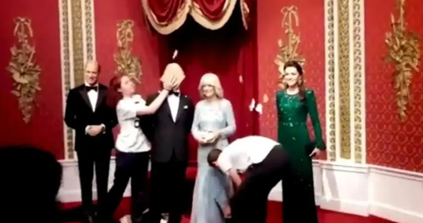 Activistas lanzan bizcocho a la figura de cera de Carlos III en el Madame Tusseauds