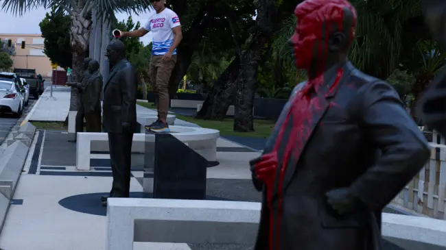 Activistas lanzan pintura a estatuas de presidentes de EE.UU. en Puerto Rico tras insulto basura