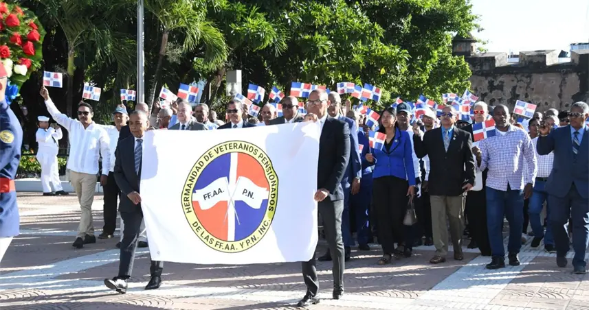 Santo Domingo.– La Hermandad de Veteranos de las Fuerzas Armadas y la Policía Nacional realizó este miércoles un solemne acto de depósito de ofrenda floral en el Altar de la Patria, en honor a los Padres de la Patria y a los héroes nacionales que sacrificaron sus vidas por la libertad y soberanía de la República Dominicana.