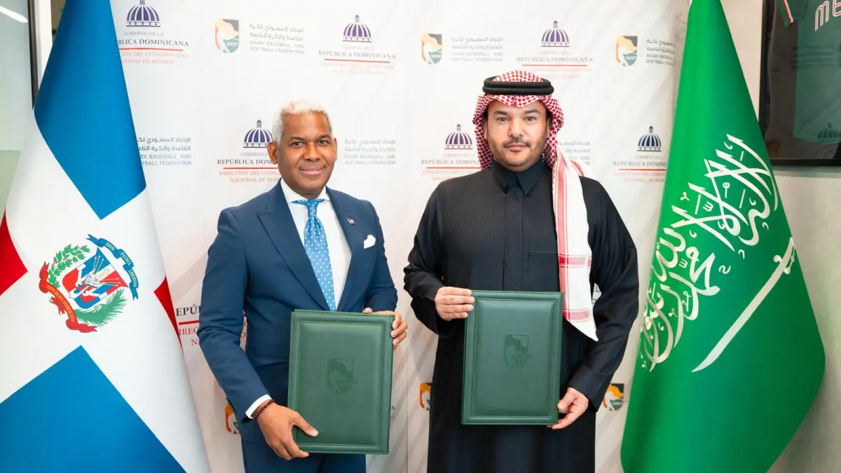 SANTO DOMINGO -.– Santo Domingo. - La Federación Saudita de Béisbol y Softbol firmó un acuerdo de cooperación con la Dirección del Comisionado Nacional de Béisbol de la República Dominicana. El mismo fue firmado por el Embajador de la República Dominicana en el Reino de Arabia Saudita, Andy Rodríguez Durán, en nombre del Comisionado Nacional de Béisbol, el expelotero Junior Noboa.