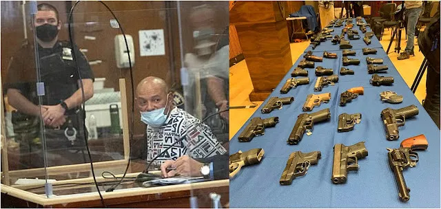 "También está acusado de llevar su trabajo a casa, vendiendo docenas de armas afuera de su edificio de Morningside Heights, donde vive", dijo el fiscal mostrando las 80 armas vendidas a los policías en una larga mesa que incluyen 63 pistolas semiautomáticas, 11 revólveres y una escopeta recortada.