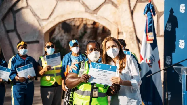 La alcaldesa Carolina Mejía al encabezar los actos de reconocimiento valoró la ardua labor que realizan las colaboradoras cada día para mantener la ciudad capital limpia, ordenada y en las mejores condiciones para el disfrute de todos y todas.