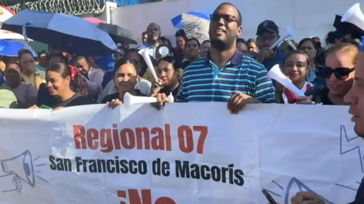 San Francisco de Macorís.– Con pancartas y utilizando consignas la Asociación Dominicana de Profesores (ADP) se concentró este jueves en el Distrito 07-05 de San Francisco de Macorís, para reclamar la intervención de las escuelas que presentan deterioro.