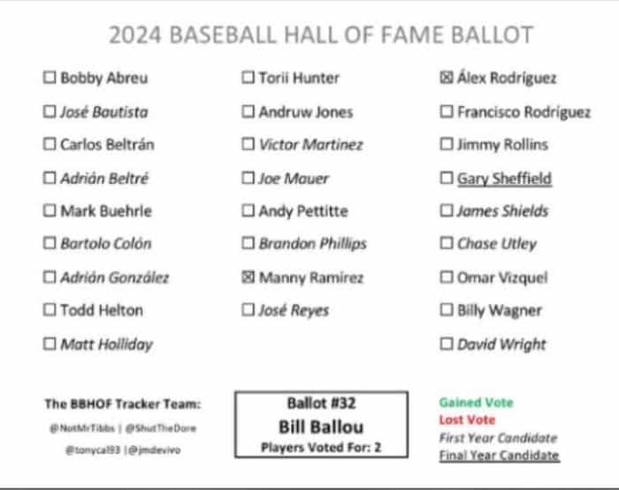 El escritor indica que da su voto por Ramírez y Rodríguez debido a que, si bien fueron suspendidos por su vinculación al dopaje, los reglamentos para el Salón de la Fama no vetan a este tipo de exjugador, dado que el comité de revisión de la BWAA los incluye en las quinielas.