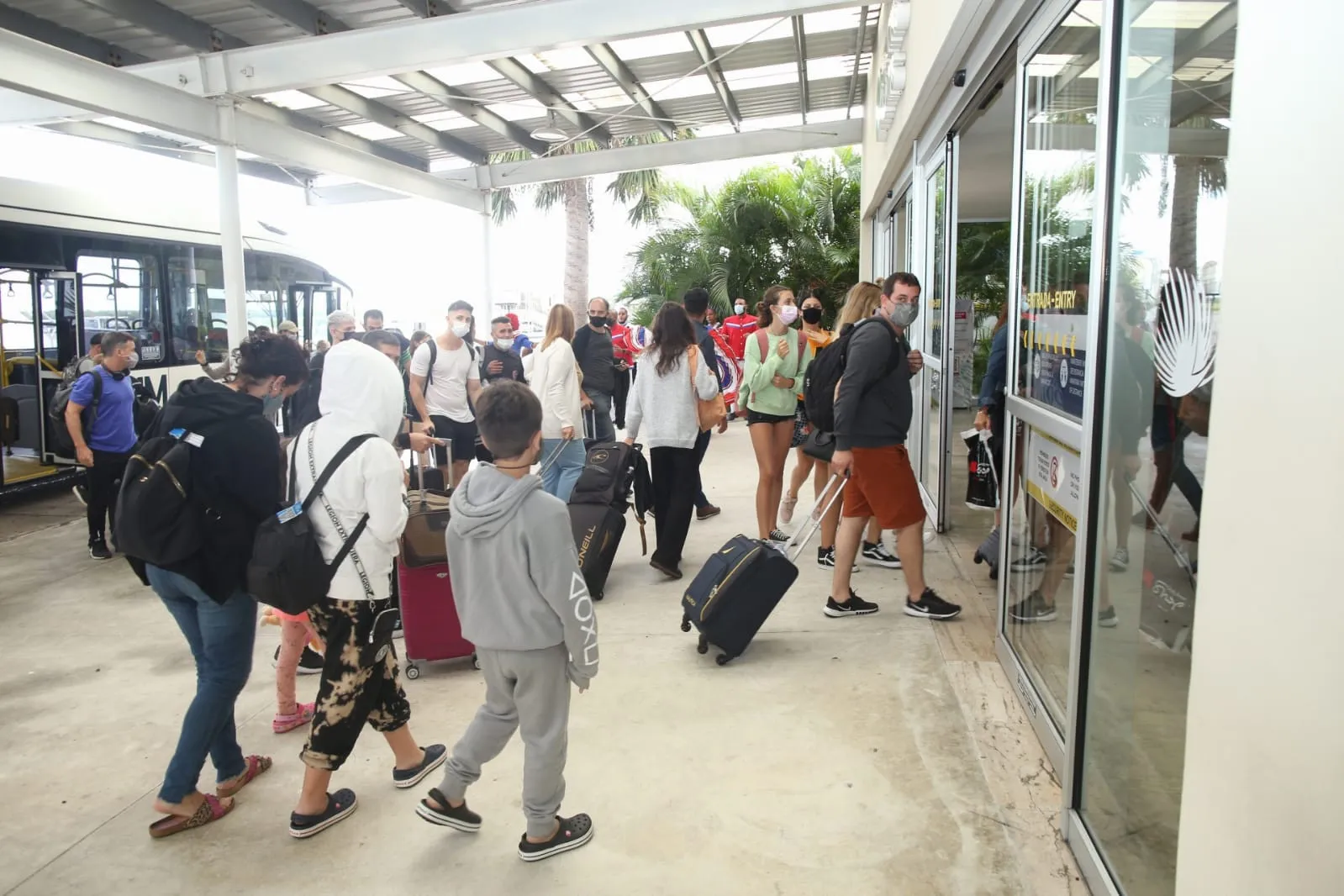 Los primeros pasajeros, post-pandemia, procedentes del país sudamericano, llegaron a República Dominicana en el vuelo 1324, totalmente lleno, con la capacidad permitida por los protocolos de seguridad sanitaria y fueron recibidos por el ballet folclórico del Ministerio de Turismo, dirigido por Oscar Batista.