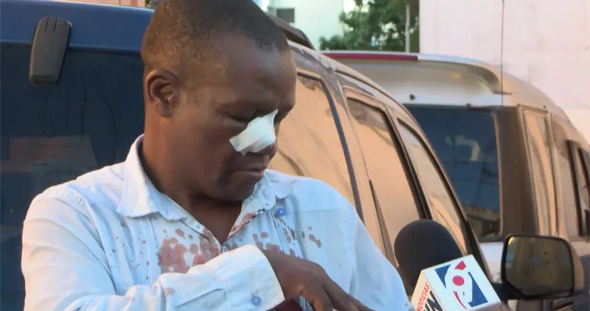 "Agarró un zafacón de basura y me tiró todo en la cara. Al levantarme para entrar, otro estudiante abrió la puerta y él se quedó con una silla ahí, y me dio; ahí mismo salí huyendo del segundo nivel hasta el primer nivel. Cuando llego al primer nivel coge dos piedras, me lanza una primero y el otro compañero viene atrás con una correa dándome por la espalda", relató Naony Anderson Solano, profesor del Centro Educativo Juan Pablo Duarte.