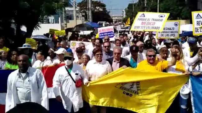 La convocatoria a la que se sumaron legisladores de diferentes partidos como Pedro Botello, del Partido Reformista y José Horacio Ramírez, de Alianza País, así como la Asociación Dominicana de Profesores (ADP), de Empleados Universitarios de la UASD, la Federación Dominicana de Afiliados a la Seguridad Social, el Falpo y los Cañeros, partió a las 10 de la mañana desde la sede del Colegio Médico Dominicano.