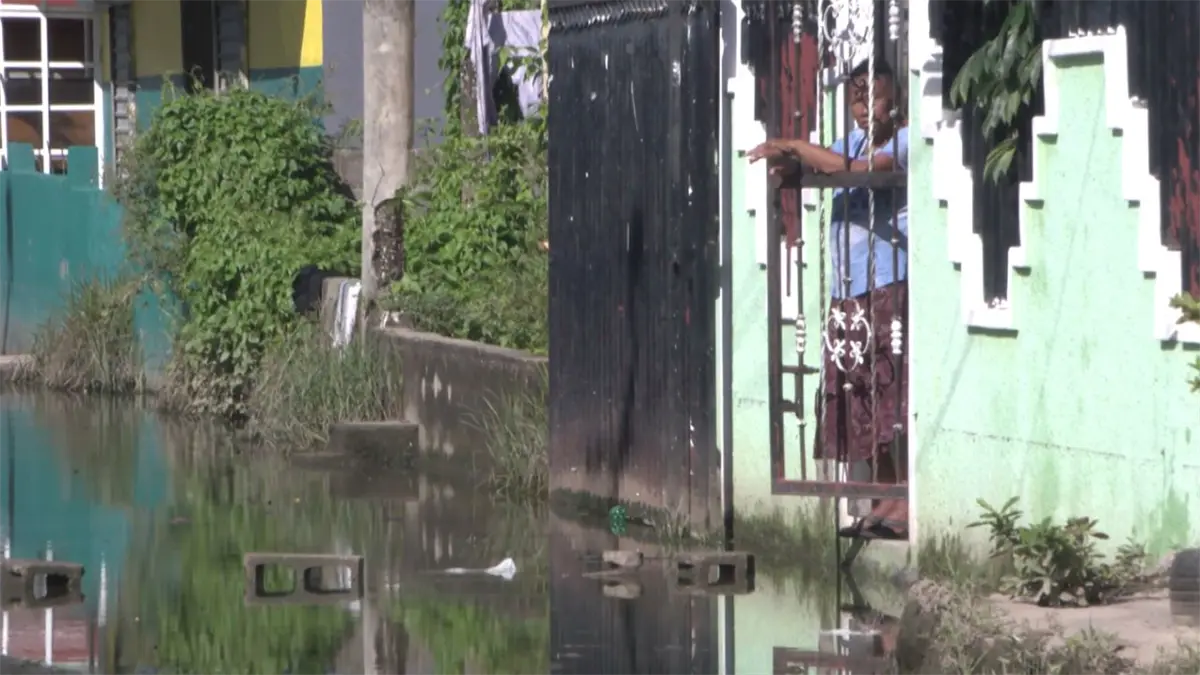 Desde las primeras horas del día, los moradores permanecían encerrados en sus casas, atrapados por el agua que cubre las calles y que, según aseguran, se acumula durante meses sin que ninguna autoridad acuda en su auxilio.