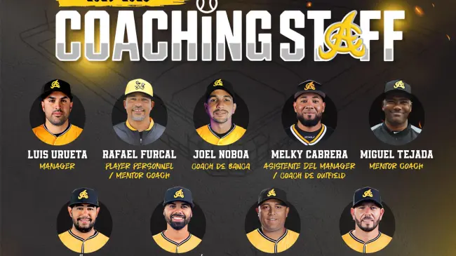 El staff de coaches de las Águilas Cibaeñas para la temporada 2025-2026 estará liderado por el experimentado dirigente colombiano Luis “Pipe” Urueta, quien aporta una sólida trayectoria en el béisbol profesional.