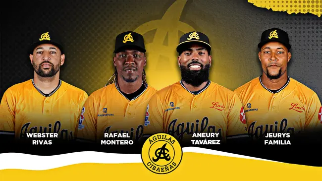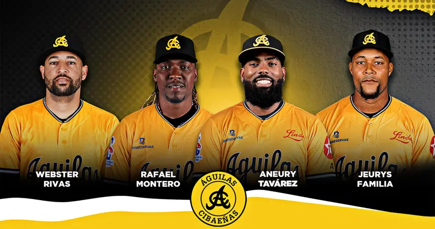 Santiago.– SANTIAGO.- Las Águilas Cibaeñas dan una calurosa bienvenida a los nuevos miembros de la organización, el receptor Webster Rivas, los lanzadores Rafael Montero y Jeurys Familia y el jardinero Aneury Tavárez, firmados en la agencia libre en los últimos días.