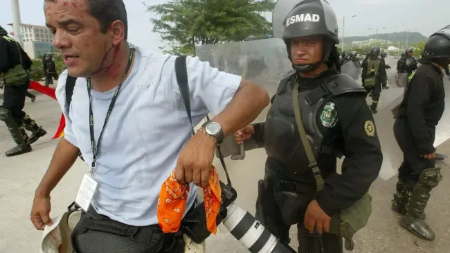 Bogotá.– Bogotá.- Al menos 13 periodistas fueron agredidos el domingo durante las multitudinarias protestas contra el Gobierno del presidente colombiano, Gustavo Petro, denunció este lunes la Fundación para la Libertad de Prensa (FLIP).