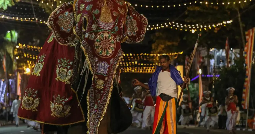 Imágenes del incidente compartidas con EFE muestran a cinco paquidermos -engalanados con ornamentos dorados para la ocasión- frente a una multitud de cientos de personas a las que apenas separan un par de metros de los animales, que están aparentemente tranquilos mientras algunos sostienen sobre sus lomos a sus cuidadores.