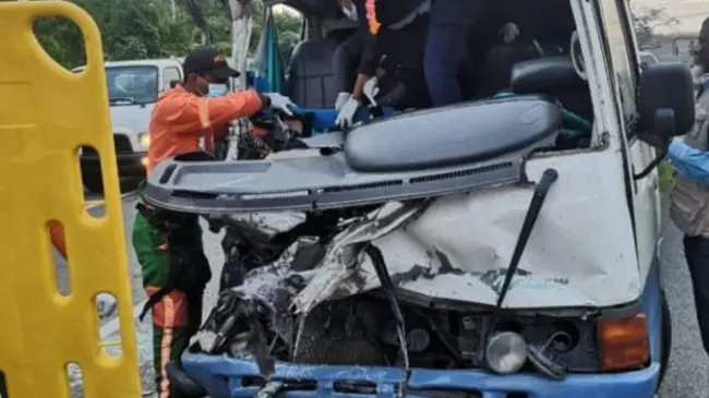 San Pedro de Macorís.– SAN PEDRO DE MACORÍS.- Al menos ocho personas resultan heridas la mañana de este miércoles, tras una patana de combustible impactar un autobús de transporte público en la Autovía del este, específicamente en la entrada de Juan Dolio.
