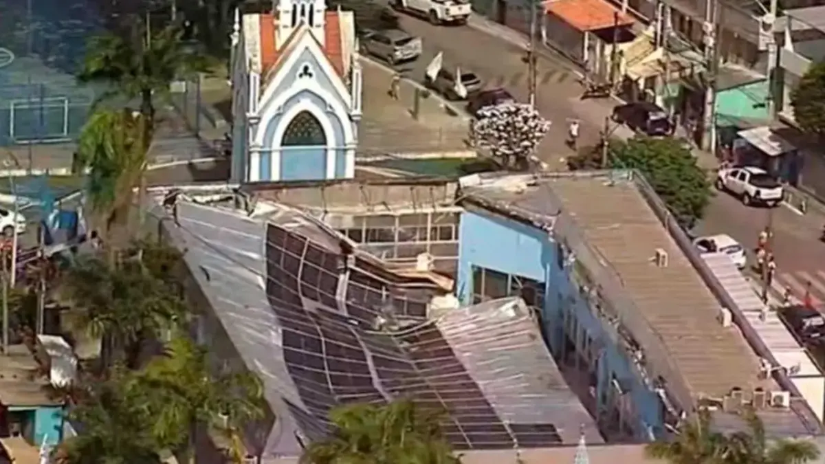 Según imágenes de helicóptero transmitidas por la cadena Globo, el techo metálico del santuario, sobre el que había paneles solares que acababan de ser instalados, se vino abajo casi por completo, manteniéndose en pie las cuatro paredes del edificio.