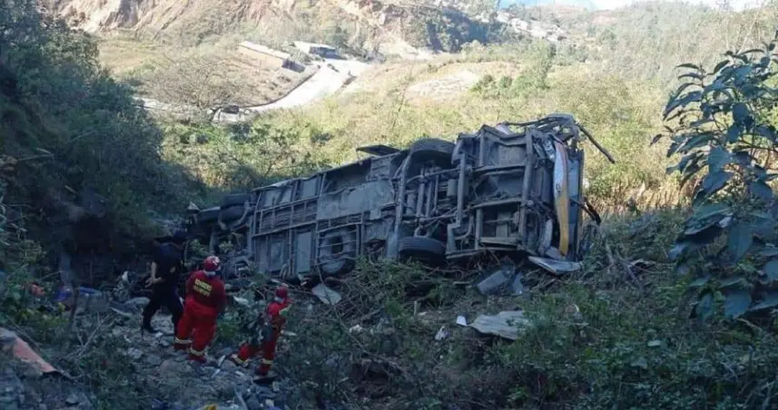 Por su parte, el Ministerio de Salud emitió un comunicado en el que precisó que el accidente ocurrió a las 9:00 hora local (14.00 hora GMT) y que la causa fue un despiste del conductor del autobús que provocó que este cayera por un precipicio. y volcara.