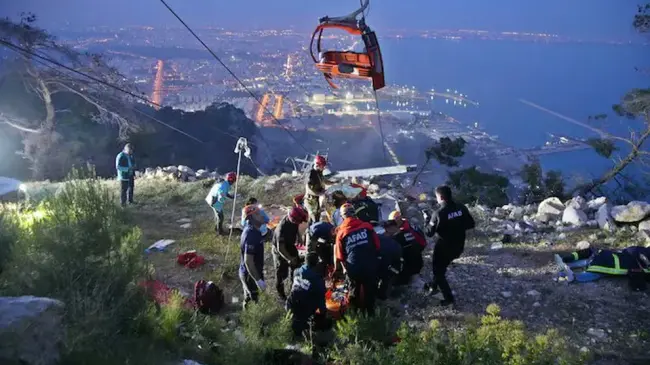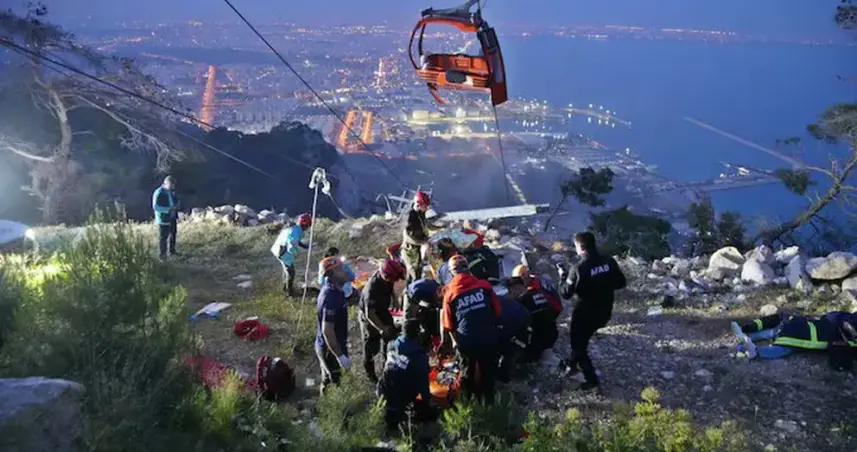 El accidente tuvo lugar en el teleférico de Tünektepe, a una decena de kilómetros al oeste de Antalya, que conecta un puerto local con un popular mirador situado en una cercana cumbre de 600 metros de altitud.
