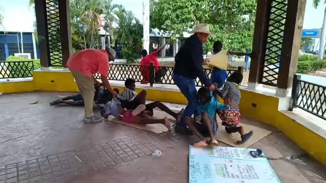 El video muestra a un alcalde iracundo y hastiado por la presencia de haitianos ilegales en su municipio fronterizo. Se mete a una glorieta pública donde duermen varios niños haitianos y dos adultos.