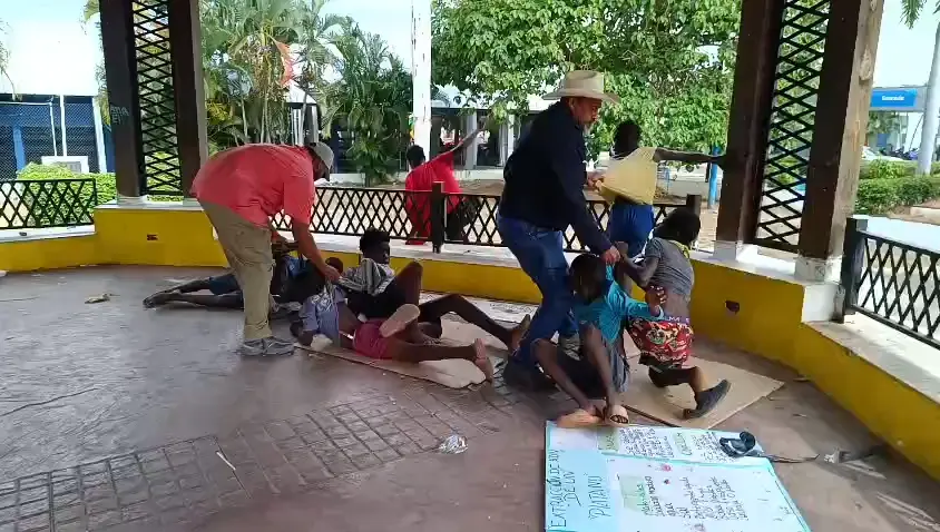 Frustrado por lo que considera la inacción de las autoridades, Santiago Riverón agarra a los niños, los levanta de forma violenta y los sacude, con la intención de levárselos del lugar para que, presumiblemente, sean deportados. La misma suerte corren los adultos.