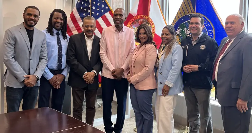 La visita a la sede municipal fue coordinada por el prestigioso médico dominico-cubano, Vicente Rodríguez, acompañado de la periodista Rose Mary Santana, reconocida ampliamente por varias municipalidades en Florida